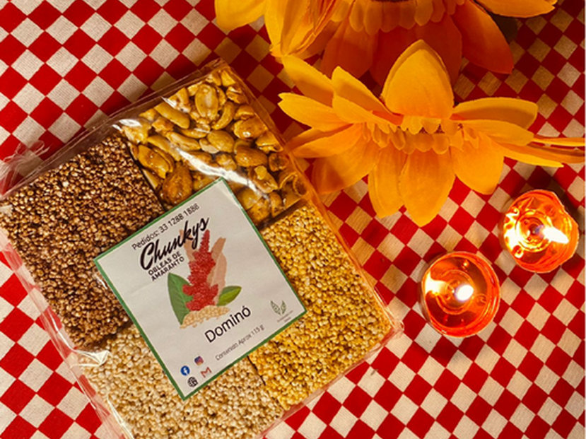Nuestro Dominó está compuesto por alegrías y palanquetas. Las alegrías son barras de amaranto tostado, mientras que las palanquetas son barras de cacahuate mezclado con jarabe de piloncillo y amaranto.